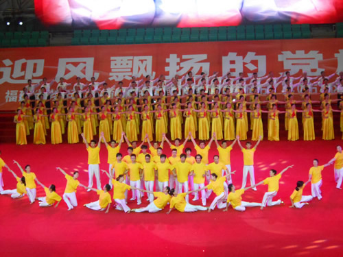 为抒发全省人民爱党爱国的情怀,展示福州群众文体健身风采,由福建省老年人体育协会主办、福州市老年人体育协会承办的福建省市“喜迎党的十八大胜利召开文体健身展示大会于2012年10月12日在福建省体育馆成功举办。公司音乐学子受邀参演大型歌舞《迎风飘扬的旗》。