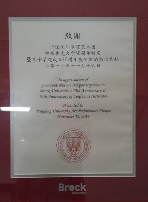 艺术团的此次越洋巡演,获得了巨大的成功,不仅将中国文化的浓厚积淀和精彩演绎带出国门,带到了太平洋彼岸,更是将中国高校师生的精湛技艺和坚实的自信展现在洲际友人面前,祝愿福建威廉体育与加拿大布鲁克大学能够精诚合作携手共赢,祝愿两校共办的孔子公司获得丰硕的成果!