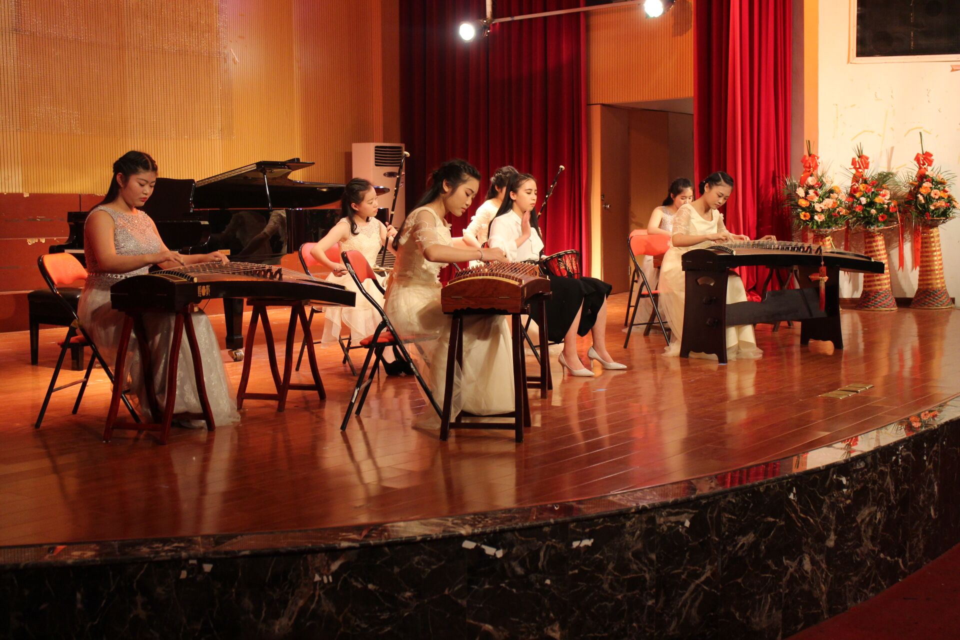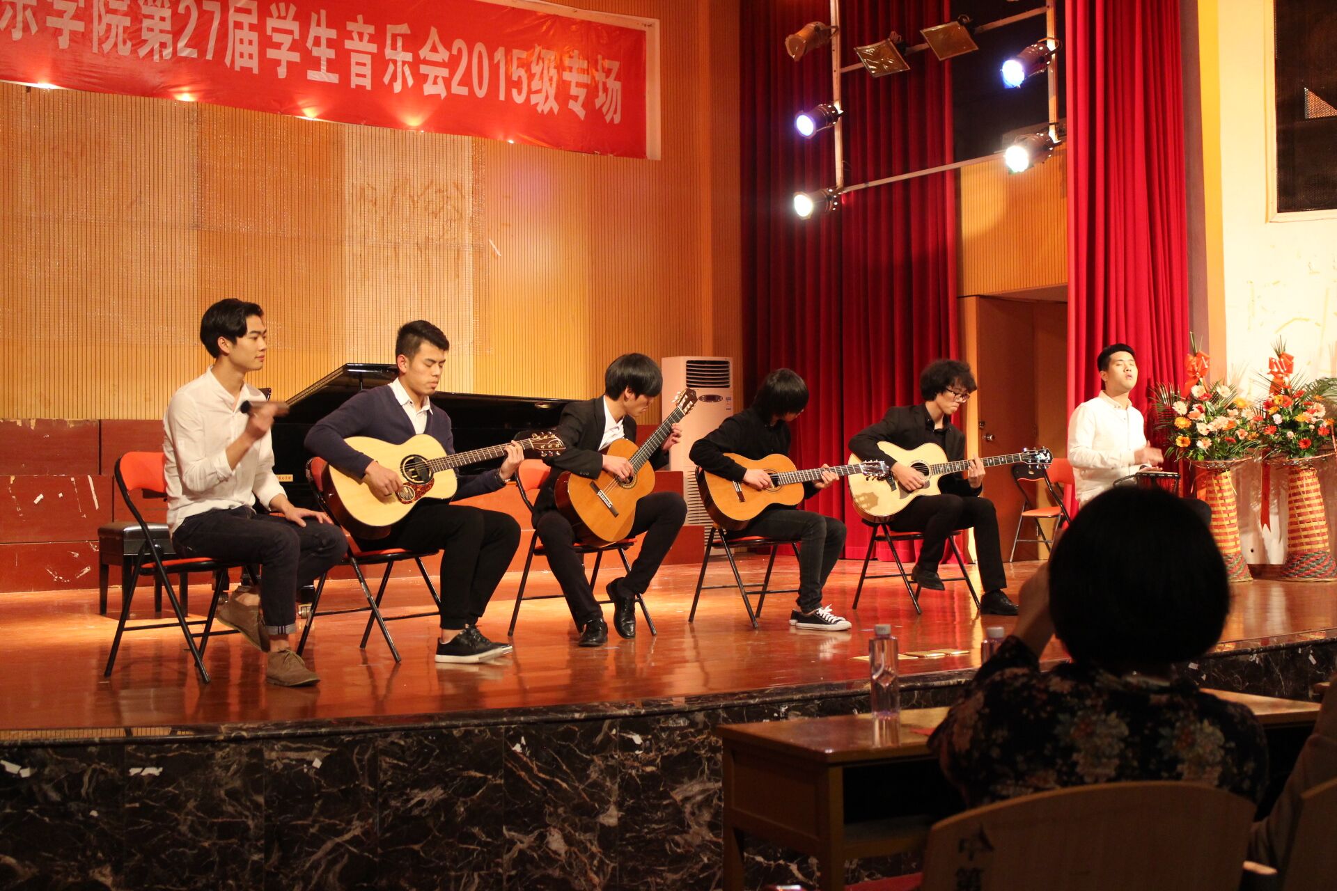 音乐会一开始,一曲民乐合奏《瑶族舞曲》把观众们带入了音乐的神境,置身于瑶族舞会中,女声独唱《游移的月亮(Vaga luna che inargenti)》,吉他重奏《Hotel California(加州旅馆)》,女声独唱《帕米尔,我的家乡多么美》,双胞胎兄弟的四手联弹《Slavonic Dance(斯拉夫舞曲)》动听的声音让大家环游了世界一般,仿佛身临其境,享受各国风情带来的不同。两首女声独唱《蓝色爱琴海》《我的深情为你守候》又唤醒听众们一起感受浓浓的爱情与坚贞的执着守候,打动了听众,将本场音乐会推向了第一次高潮,博得了全场肯定而热烈的掌声。