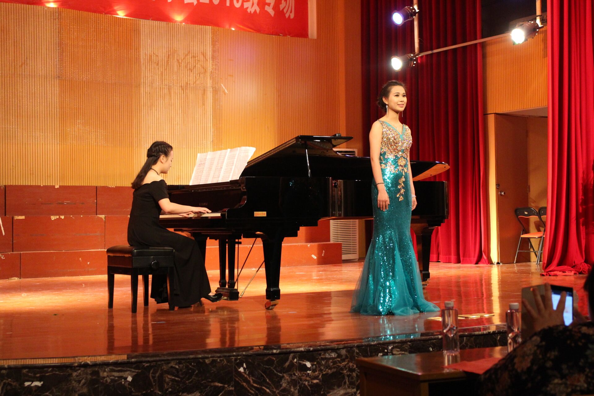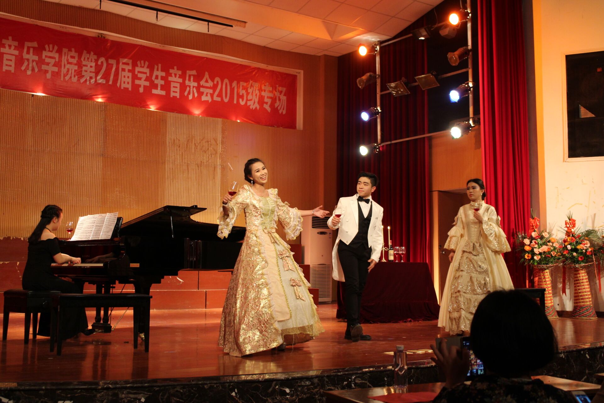 钢琴独奏《Coccata(托卡塔)》扎实的功底和灵活的指法获得到场嘉宾们的认可,女声独唱《思恋》,让大家平静下来,用心体会心灵之声,接下来钢琴和长笛的默契配合--《查尔达什(Csárdás)》,女声独唱《长鼓敲起来》,钢琴独奏《Prelude in g minor(g小调前奏曲)》将会场气氛再次慢慢推向高峰,最后歌剧选段《Libiamo ne’lieticalici(饮酒歌)》情景再现,观众热情不减,现场掌声欢呼声此起彼伏,音乐会也在意犹未尽中圆满结束。