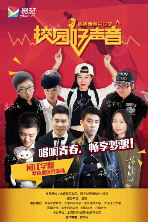 图:全国第二届校园好声音6强比赛最终成绩与队员合影(20160414)
