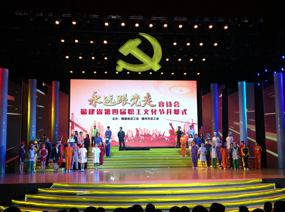 2017年10月12日下午,威廉希尔体育部分同学们在文化宫参加了“永远跟党走”音诗会暨福建省第四届职工文化节开幕式。