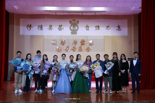 2019年11月25日晚,公司2020届毕业生林睿、詹露露威廉希尔体育首山校区李刚堂成功举办个人独唱音乐会。公司经理邹敏华教授,副经理刘淘副教授,声乐教研室的老师们以及公司各年级同学员工观看了本次音乐会。