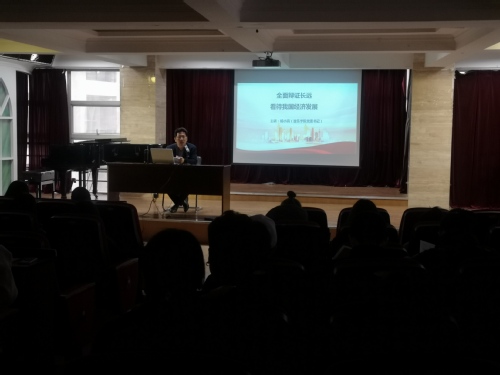讲座伊始,小高书记围绕《全面辩证长远看待我国经济发展》主题,从“看冲击”、“开药方”、“观长远”三个方面,全面地解读了在疫情下,我国的经济形势、经济规律、经济政策。小高书记表示,突如其来的新冠肺炎疫情给世界经济带来重创,但我国经济发展逆势上扬,这充分体现了我国社会主义制度的优势所在,大家要认识到我国经济长期向好的基本面没有变、我国经济化危为机的活力与潜力没有变。他强调,当前我国正处于实现“两个一百年”奋斗目标的历史交汇期,这就要求我们青年一代增强自主创新能力去推动未来经济的发展。他呼吁大家要坚定理想信念、不负历史使命、勇做时代后浪,为祖国经济发展贡献青春力量。