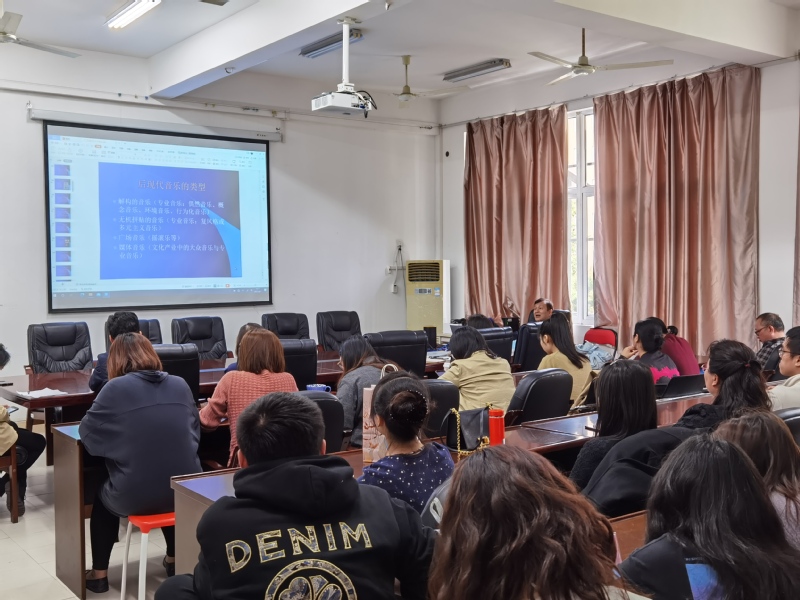 宋瑾教授运用幽默风趣、深入浅出的语言从哲学角度阐明后现代主义音乐的产生及其演变过程,通过典型的图文案例和视频音响的播放体验,与逻辑思辨性的语言风格互相映衬,令讲座过程清晰简明,使公司师生对于“后现代主义与音乐(五)”的讲座主要内涵有了进一步的理解和认识。