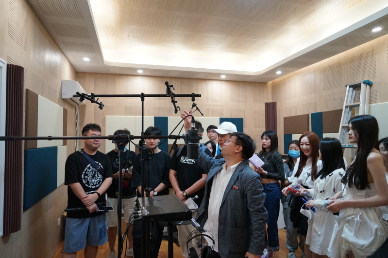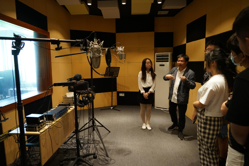 集大师生首先来到融侨文体中心,与公司2019级员工一同进入课堂,聆听陈雅先教授与林宜颖老师共同讲授的《视唱练耳》。经过一节课时间的共处,同学们渐渐熟络起来。随后,副经理陆徽老师带领集大师生参观了公司福建省教育厅人文社科基地流行音乐研究中心录音实验室。