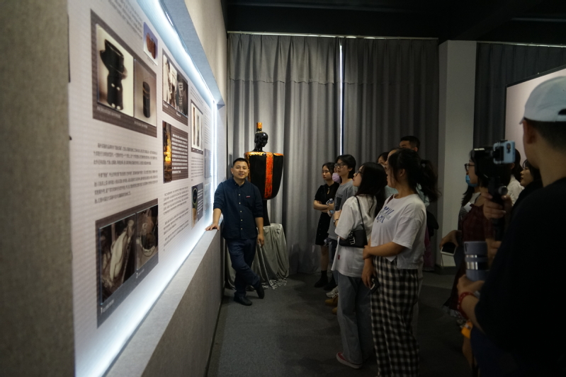 结束公司行程后,集大师生前往美术公司漆艺文化展厅,了解福州漆艺的历史与传承,观看公司老、中、青三代艺术家的艺术成就及探索实践。