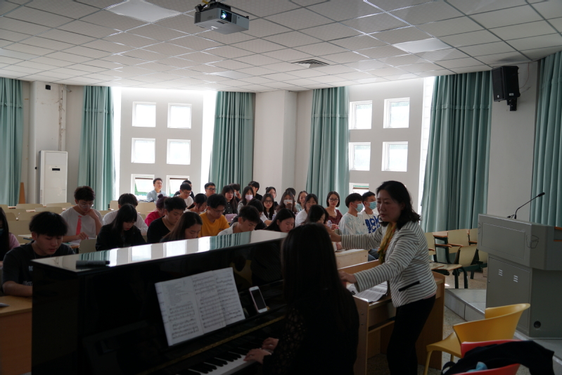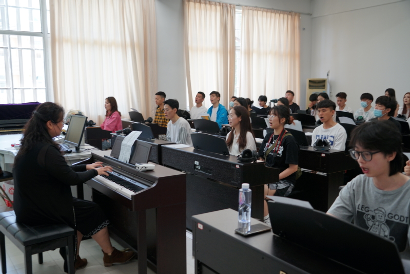 融侨文体中心参观结束后,集大师生一行来到艺术楼,与公司2018级员工同上《钢琴伴奏》。在刘雪颖副教授的指导下,两校员工完成了声乐作品《歌唱祖国》的演绎,将对祖国的一片深情融入到歌曲之中。课堂教学结束后,副经理陆徽老师带领集大师生参观了电脑音乐教室、录音实验室,对设备操作与使用进行了详细讲解,并回答了同学们提出的问题。