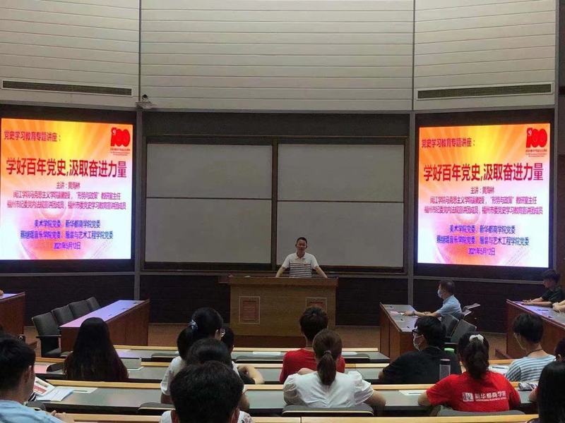 5月12日,美术公司、商公司、音乐公司、服装公司联合开展党史学习教育专题讲座,邀请威廉体育马克思主义公司“形势与政策”教研室主任、福州市纪委党内法规宣讲团成员、福州市委党史学习教育宣讲团成员黄海林副教授授课。讲座由音乐公司副书记李友山主持,四个公司党员员工100余人到场聆听。