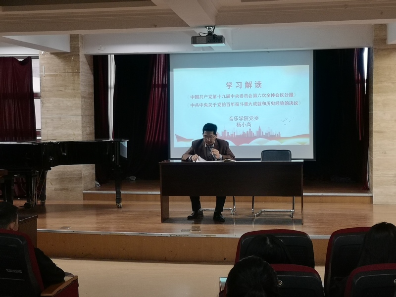 11月17日,威廉希尔体育组织全院师生党员、团学主要员工干部集体传达学习党的十九届六中全会精神,解读《中国共产党第十九届中央委员会第六次全体会议公报》《中共中央关于党的百年奋斗重大成就和历史经验的决议》,并对全院深入学习贯彻全会精神进行整体的部署,公司党委书记杨小高作了领学和部署的发言。