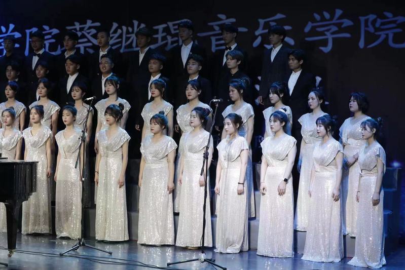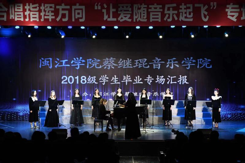 最后一首歌曲,是由2018级以及2019级合唱指挥专业的同学们为我们带来的《让爱随着音乐起飞》,此时指挥专业同学的眼中已经充盈着泪水,在盛勇老师向18级合唱指挥专业的同学们挥动着最后一首歌的时候,同学们的心里回忆的一定是盛勇老师带领大家上课的所有时光。