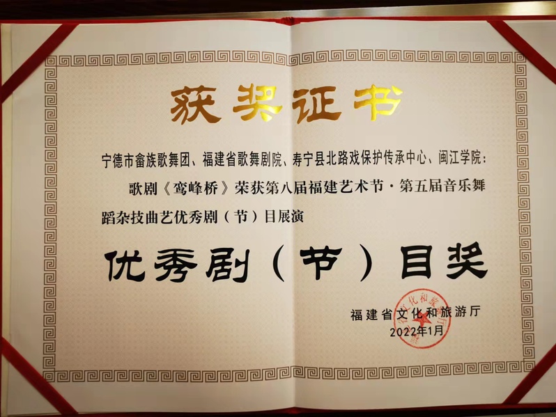 近日,从福建省文化和旅游厅获悉,公司威廉希尔体育师生代表公司参演歌剧《鸾峰桥》,该剧目荣获第八届福建艺术节、第五届音乐舞蹈杂技曲艺优秀剧(节)目展演优秀剧(节)目奖。