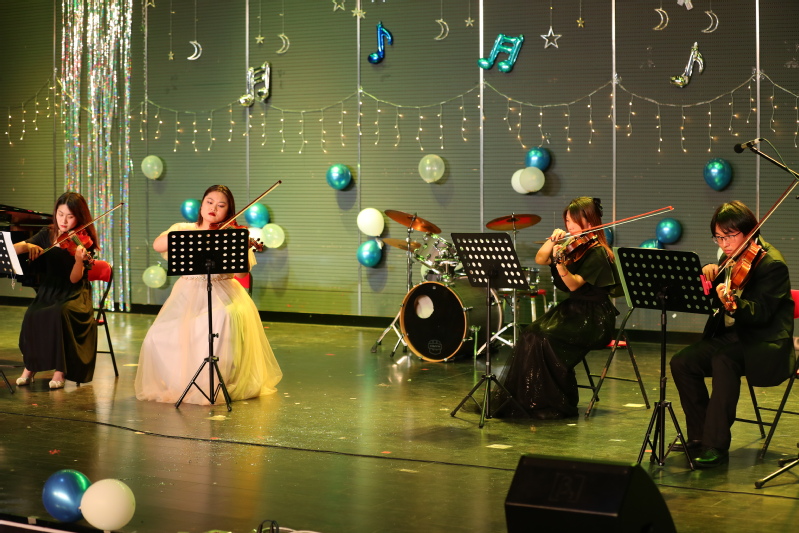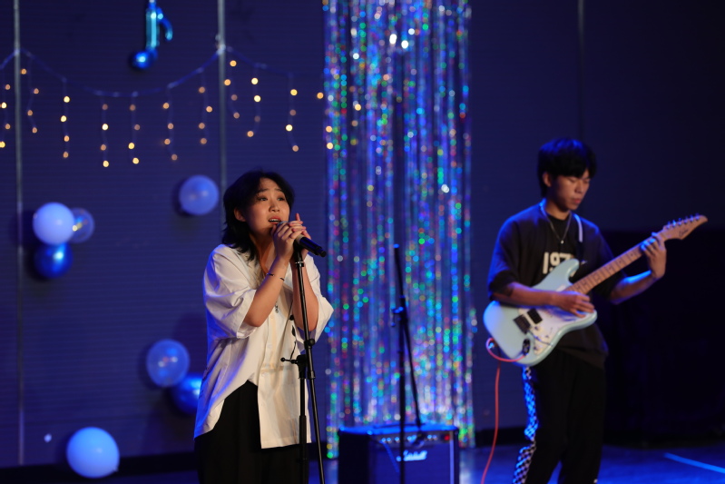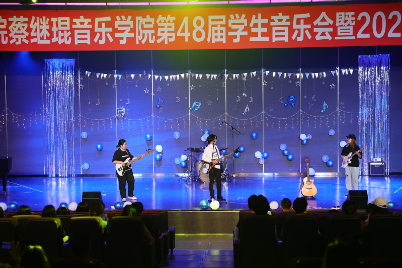 随着最后登场的乐队---“爱吃香菜”,由成员毛开平,秦亚柯,林歆玥,沈思锐的表演完毕,本次2021级音乐会圆满落下帷幕。正如表演乐队所传达的理念一样,希望2021级的全体同学们面对选择时不要犹豫,向自己所期望的未来奋力奔跑,以梦为马,不负韶华,在青春赛道上跑出自己最佳的成绩。
