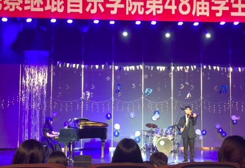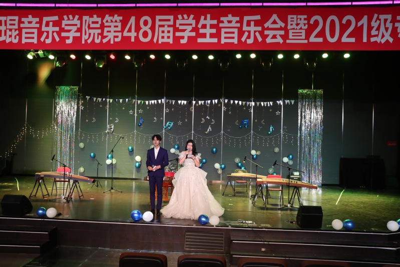在来自2021级王欣瑞和赵志伟同学的现场主持下,开启了当晚梦幻般的音乐殿堂。