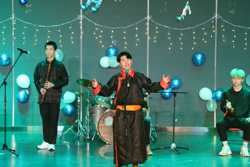 《山顶》这首歌是内蒙古鄂尔多斯蒙古族民歌,歌中讲述了一对恋人相约草原山脉的情景,歌中展现了不光只有草原的美,还有一对情人的美好爱情故事。由来自内蒙古的马文杰同学用蒙古语演唱,沈筱雁,兰亚坤,曾德鸿,连溢敏,毛开平五位同学则以钢琴、马头琴、竹笛、沙锤和非洲鼓融合,演绎成了一首美妙的乐曲。
