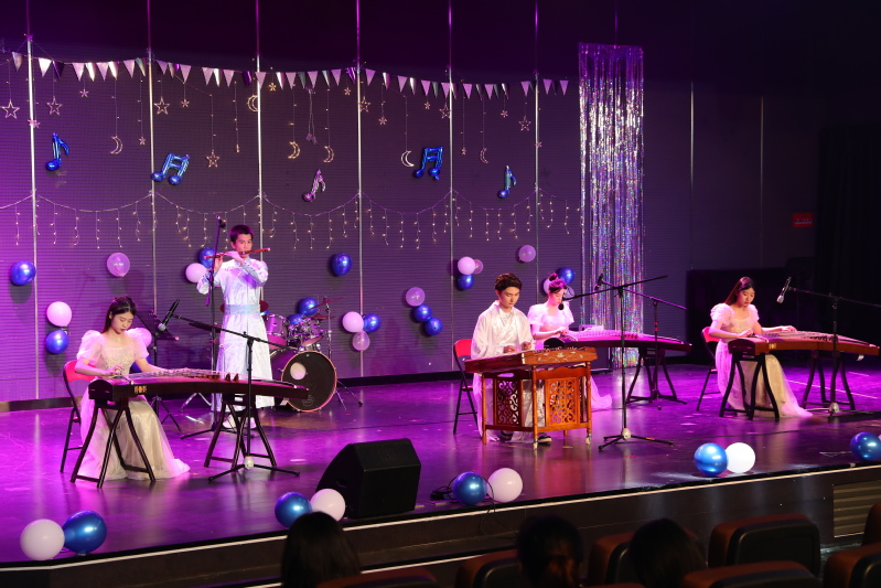 开场节目民乐合奏《小城谣》由表演者:常子建、曾德鸿、刘玥铃、张珂景、陈静萱,通过扬琴、竹笛、古筝所交织演奏出的乐曲声,向在场的观众呈现了青衣致密温柔乡的画卷。