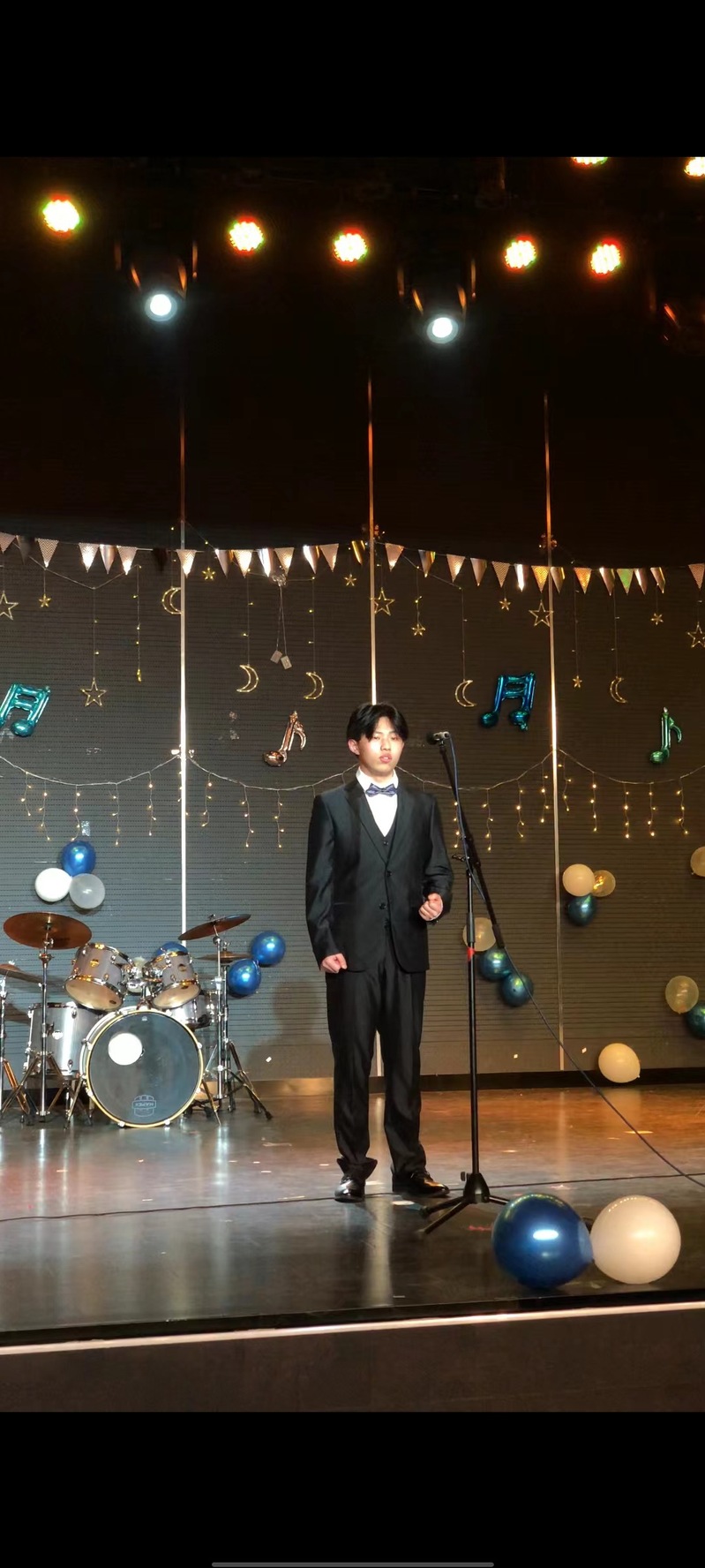 “大江东去,浪涛腾跃成千古;大江东去,龙势矫矫向太阳;大江东去,枕下终夜是江声……”黄昊天同学演唱的《大江东去》气势磅礴,震撼全场。