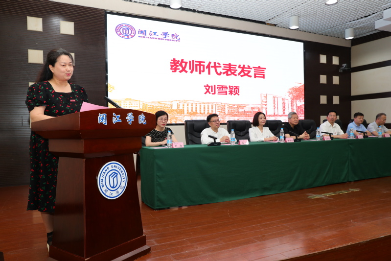 刘雪颖副教授作为教师代表发言。她说,在这个愉快的时刻,萦绕在老师们心里的除了师生的惜别之情,更多的是一份骄傲和自豪。她寄语毕业生,在今后的工作学习生活中,在面临机遇和挑战时,希望大家不忘初心、端正思想、脚踏实地、求学求知、拼搏进取、爱岗敬业、戒骄戒躁、奉献社会、常回来看看。用音乐,用真善美温暖身边的人,创新、创业、创造,为祖国和人民,贡献自己的力量。
