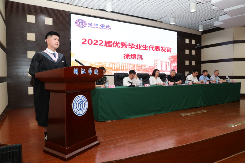 优秀毕业生代表徐煜凯发言。他说,在闽院求学的1400多个日日夜夜,是人生中最难忘、最珍贵、最值得铭记的一段时光。在老师们的引领下,大家一起欢笑,一起打拼,见证了闽院发展的一点一滴。老员工活里的酸、甜、苦、辣,给每个人都留下了弥足珍贵的回忆。马上就要背起行囊,开赴新的征程,但“崇尚完美,追求卓越”的威廉体育校训已深深的烙印在内心,希望全体毕业生牢记母校的殷切期望,在新的人生道路上打出一片天地。