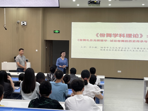 9月7日晚,福建省非物质文化遗产佾舞项目代表性传承人李宗霖为音乐公司师生开展了主题为《佾舞礼乐光辉耀华——佾舞的历史传承与社会价值》的讲座,本场讲座由音乐公司副经理刘淘主持。