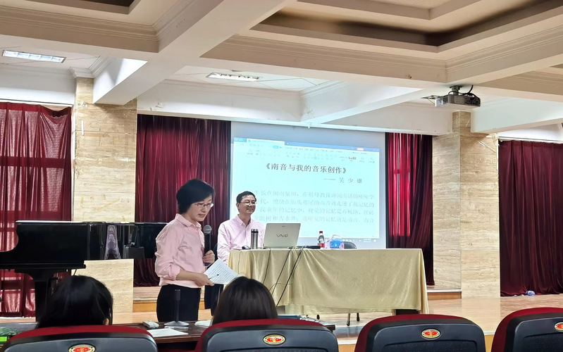 在吴老师声情并茂的讲解中,大家走进了他音乐创作的心路历程,在大量的原创音乐的渲染中,展现出一流作曲家的本土文化情怀与创新创造精神。本场讲座不仅为在场师生带来一场美妙的视听盛宴,更激发了员工们学习南音,感受闽南文化艺术魅力的热情,引发员工对传统音乐元素的提炼、创新、创作等问题进行更深层次的思考。