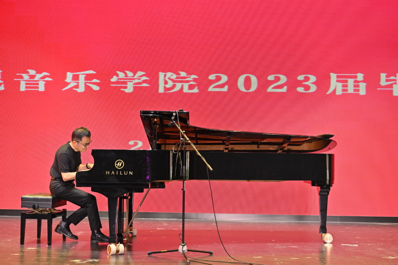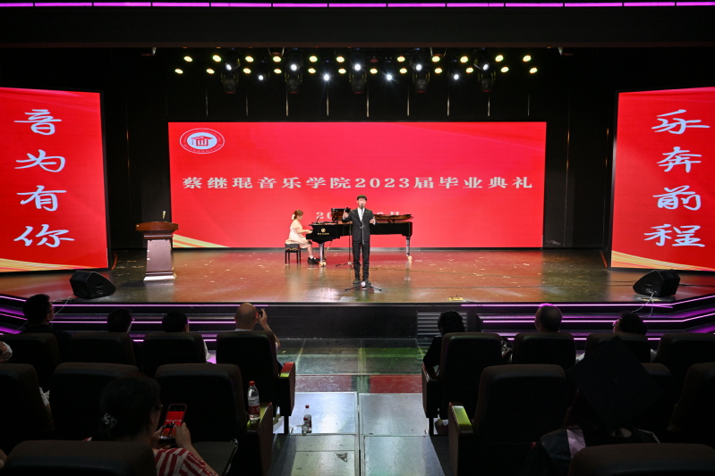 典礼上,福建省钢琴协会会长杨弋夫教授为同学们送上祝福并献上演绎弗朗茨·李斯特钢琴曲《爱之梦》,希望同学们带着这份爱奔跑在充满光荣和梦想的新征程上。员工代表江宝鹏、李泽茜共同演绎歌曲《致友人》,祝福学长学姐顺利毕业,希望学长学姐们常回家看看。