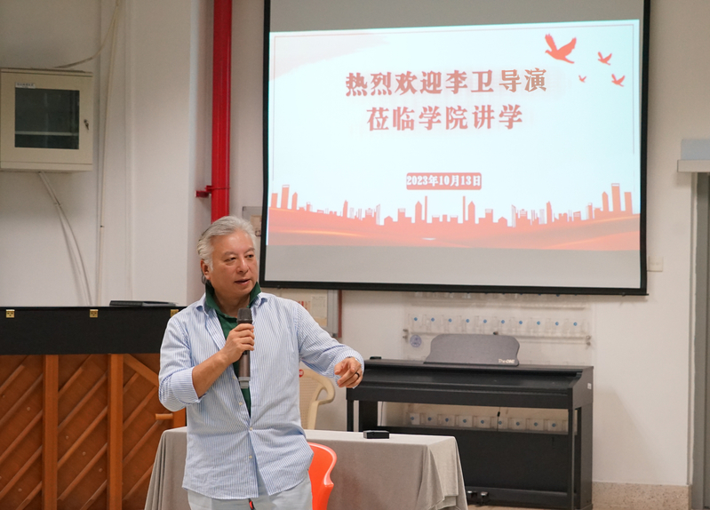 讲座接近尾声之际,同学们也热烈地向李导演提问交流,积极地参与到互动讨论中来。讲座氛围十分活跃。最后,全体师生与李卫导演合影留念。