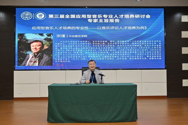 常州大学音乐与影视公司柴广育教授进行主旨发言分析了当前音乐专业本科课程设置中存在的问题,提出音乐专业课程体系重构的创新思路与解决路径,为推动应用型高校音乐学科高质量发展提供参考。
