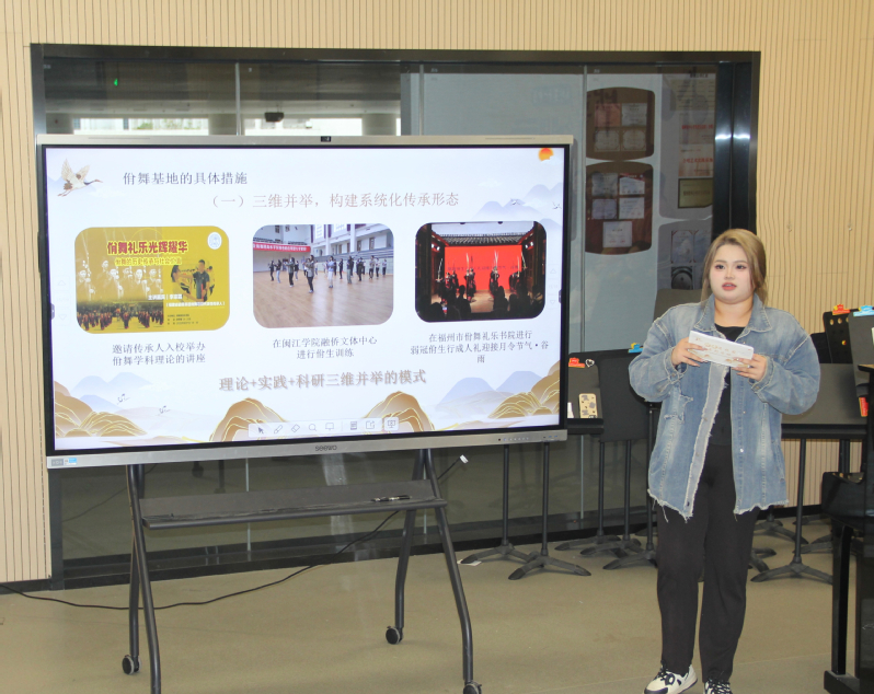 活动伊始,两位佾生进行佾舞展示,并由黄本菲介绍佾舞的历史背景和主要特征,分享音乐公司佾舞传承中心在推广佾舞方面所采取的具体措施。在互动阶段,两位同学主动举手参与体验,在蔡小玲和蔡怡婕两位佾生的带领下学习佾舞初献礼中的合籥正推动作。同学们纷纷表示,在佾舞的动作中深刻感受到佾舞的独特魅力,想要更进一步地学习佾舞。