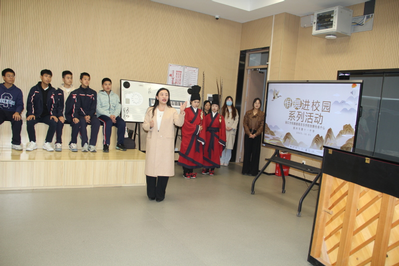 活动由佾舞传承中心的佾生黄本菲作为导赏,她向在场的同学们介绍了佾舞传承中心与福州第十一中学之间的紧密关系。她提到,早在福州第十一中学2023届高三成人礼上,佾舞传承中心就选派了16名佾生参与活动,为这一场重要的场合增添了精彩的非遗表演。因此,福州第十一中学作为佾舞传承教育实践的重要基地,与佾舞之间的关系深入人心,独具特殊意义。