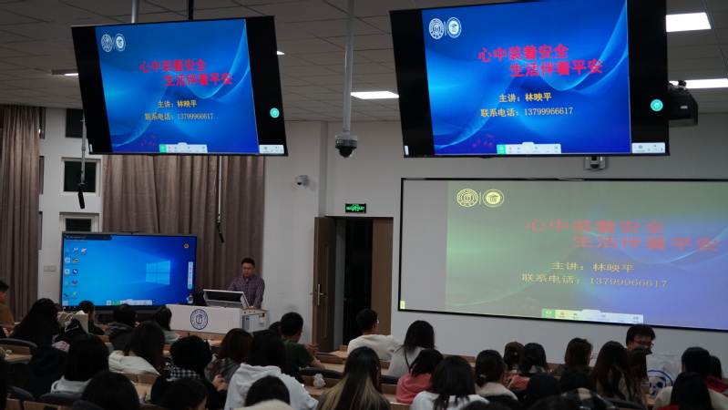 林映平副书记从人身财产安全、交通安全、食品安全、消防安全等四个方面,结合近几年大公司园案例,全面系统地为新生上了一堂安全教育课。通过生动详实的案例,让同学们了解生活中可能存在的安全隐患,例如校园电动车交通事故、防不胜防的校园盗窃事件、稍不注意就会引发的火灾等,为同学们扣好安全生活的“第一粒扣子”。