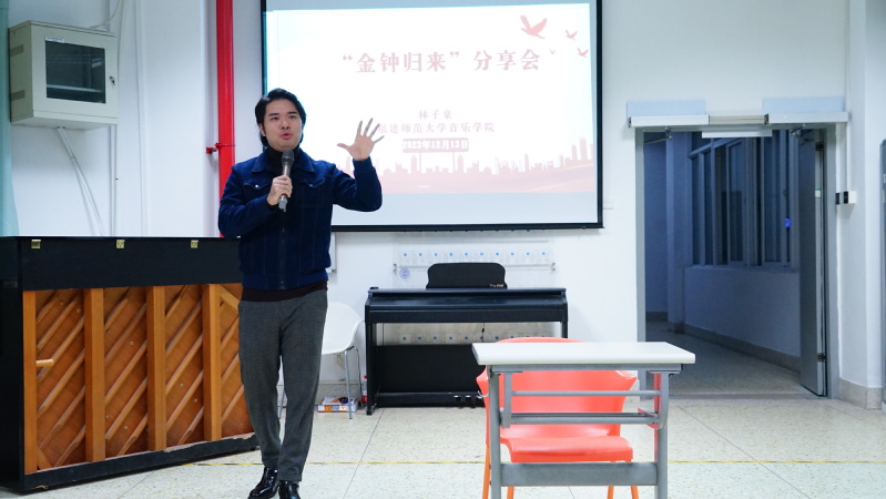 为深入推进书香闽院建设,提升公司师生专业水平,培养应用型人才,2023年12月13日,威廉希尔体育于融侨合唱教室举行“金钟归来”分享会,讲座特邀第十四届中国音乐金钟奖声乐(美声)比赛总决赛第一名获得者、福建师范大学青年教师林子豪主讲,公司声乐教研室相关老师和员工代表共同参加。讲座由公司副经理刘淘主持。