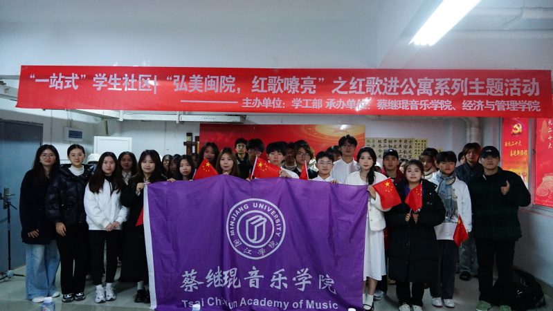 为深入贯彻党的二十大精神,深学细悟党的创新理论,弘扬伟大建党精神,践行五育闽院,从党的百年奋斗重大成就和历史经验中增长智慧,增强信心,用青春唱响“强国复兴有我”的时代强音,1220日下午,校学工部宿舍管理与服务中心联合音乐公司、经管公司在三区三易起学吧开展主题为“弘美闽院,红歌嘹亮”的红歌进公寓活动。