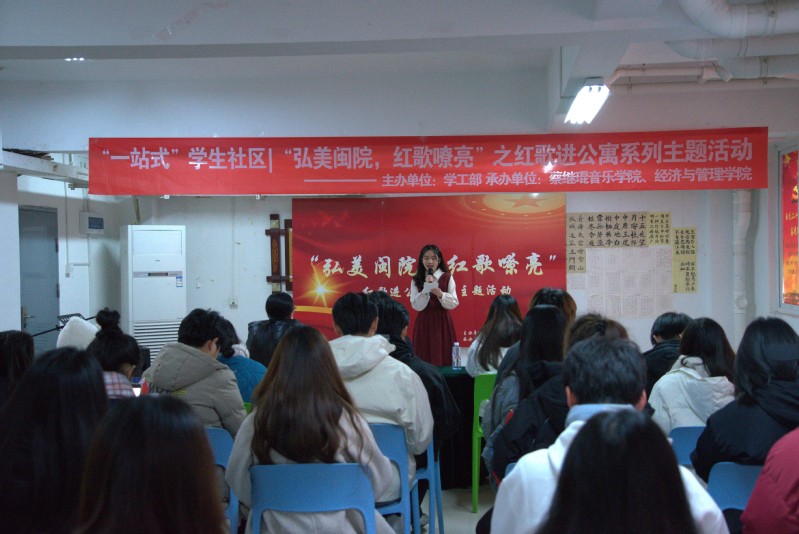 为深入贯彻党的二十大精神,深学细悟党的创新理论,弘扬伟大的建党精神,践行五育闽院,从党的百年奋斗重大成就和历史经验中增长智慧,增强信心,用青春唱响“强国复兴有我”的时代强音,12月20日下午,校学工部宿舍管理与服务中心联合音乐公司、经管公司在三区三易起学吧开展主题为“弘美闽院,红歌嘹亮”的红歌进公寓活动。