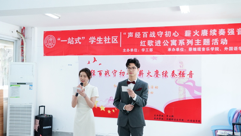 为深入学习贯彻党的二十大精神,积极推进学习贯彻习近平新时代中国特色社会主义思想主题教育在校园内走深走实,围绕“五育闽院”“一站式员工社区”“七个百”等要求,2024年3月20日下午,校学工部宿舍管理与服务中心联合音乐公司、外国语公司在一区二易起学吧开展主题为“声经百战守初心 薪火赓续奏强音”的红歌进公寓活动。
