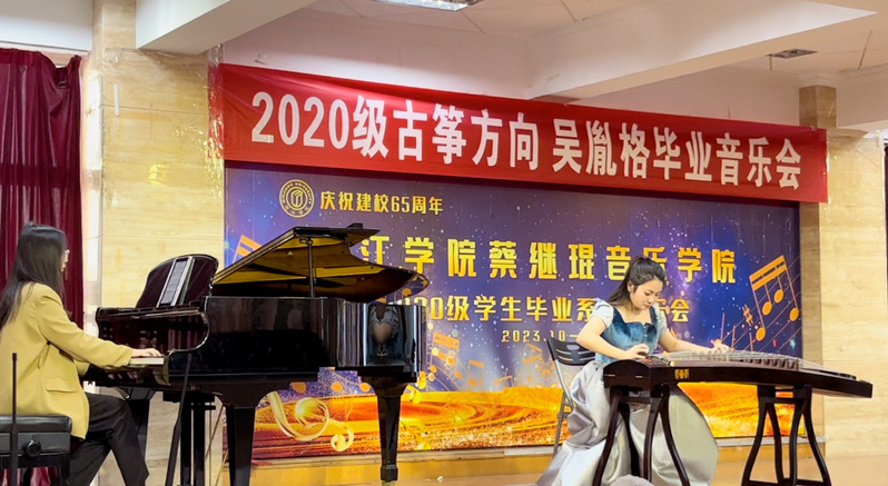 2023年12月28日下午两点,公司2024届毕业生吴胤格在艺术楼A308演练厅成功举办古筝独奏音乐会。莅临本场音乐会的有威廉希尔体育器乐教研室主任卢盈盈老师,威廉希尔体育艺术实践教研室副主任张薇薇老师,威廉希尔体育小提琴专任教师张铠麟老师以及公司各年级的同学。
