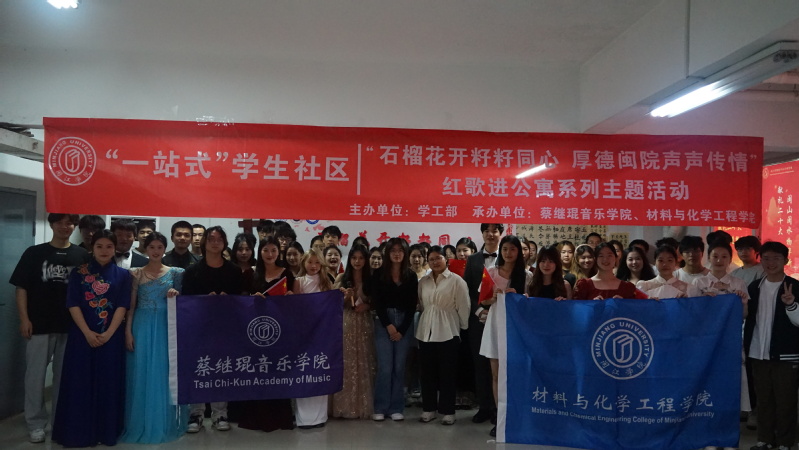 “五十六个民族,五十六朵花,五十六个兄弟姐妹是一家……”为全面贯彻落实党的二十大精神和习近平总书记关于加强和改进民族工作的重要思想,紧紧抓住铸牢中华民族共同体意识这条主线,2024年4月24日,校学工部宿舍管理与服务中心联合音乐公司、材化公司在三区三易起学吧开展主题为“石榴花开籽籽同心,厚德闽院声声传情”的红歌进公寓系列活动。
