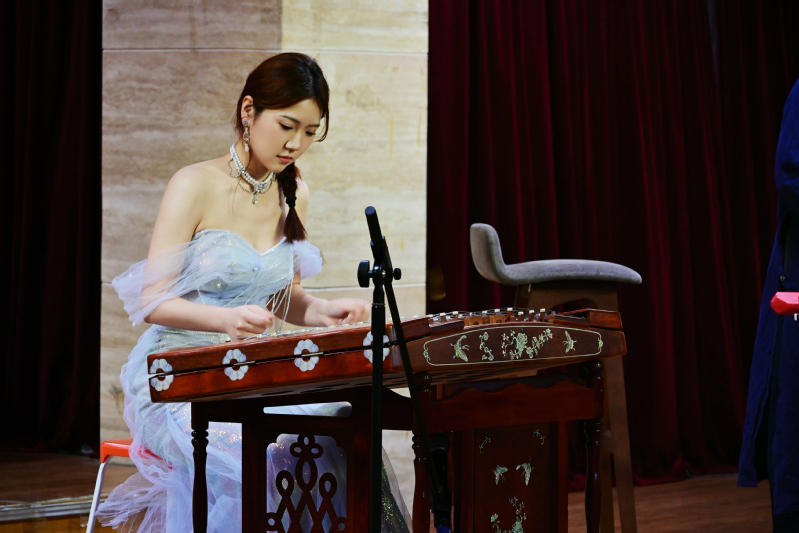 《海峡音诗》,此曲为同名扬琴协奏曲的第一乐章。由茅匡平、项祖华作曲,其以清新亮丽的旋律,真挚地抒发了海峡两岸炎黄子孙的骨肉深情,充分展现了岛上人民开拓进取的民族性格。在张婧琪和潘宇萍的演奏中,获得了在场观众的热烈掌声。