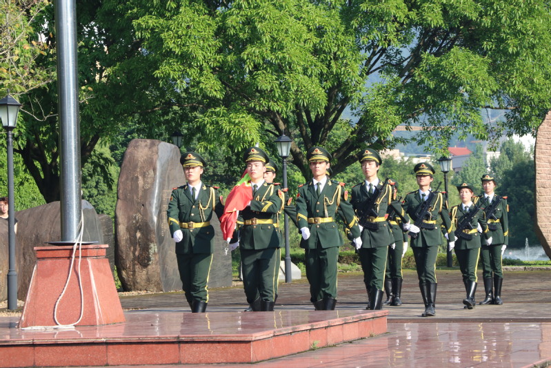 升旗仪式上,国旗护卫队面容坚毅,迈着铿锵有力的步伐,护卫着鲜艳的五星红旗走向升旗台。在雄壮的国歌声中,鲜艳的五星红旗冉冉升起、迎风招展。师生整齐列队、庄严肃立,向国旗致以最崇高的敬意!一束束坚定的目光深切表达了公司学子对伟大祖国的无限热爱之情。