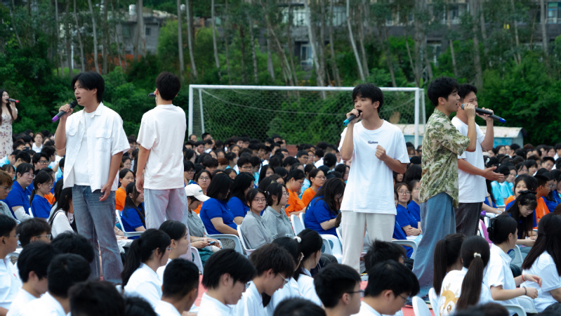 典礼以精彩的歌曲串烧表演开场,《我和我的祖国》、《等你回答》、《光亮》、《山河图》、《再一次出发》等青春欢快的歌曲使得全场瞬间沸腾,新生们跟随音乐节拍一起律动。在典礼最后一个环节,由音乐学子青年合唱团领唱《闽江学子之歌》,全体新生齐唱校歌,大家用激昂的校歌,奏响了即将到来的大学新生活的进行曲。