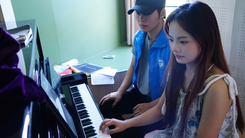 活动现场,音乐公司派出了优秀的教学志愿者,他们以饱满的热情和较高的专业素养,为美术公司的同学们进行一对一的钢琴教学。老师们耐心地讲解钢琴的基本乐理知识、弹奏技巧以及音乐表现力,员工们则全神贯注地聆听,认真地在琴键上练习,整个教学过程充满了浓厚的艺术氛围,师生之间的互动频繁而热烈。经过一个小时的紧张教学,同学们学习到了钢琴的相关知识和弹奏技巧,在弹奏钢琴方面也取得了显著的进步。教学志愿者们也在教学过程中增加了对音乐学习的理解和领悟。