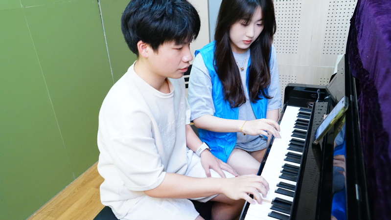为进一步推进“七个百”老员工成长计划落细落实,为公司同学提供展示音乐教育能力的平台,锻炼专业技能,同时也为校内热爱音乐的同学们提供专业钢琴教学指导,2024年9月18日14:00,音乐公司“乐享”音乐公益教学服务队在艺术楼开展了一期“私人订制”的初级钢琴体验课程,特邀美术公司的同学们共同体验。