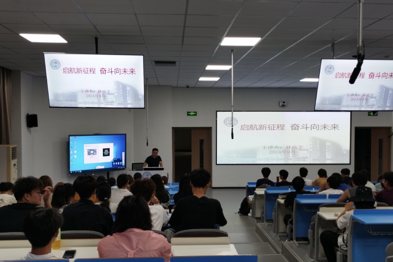 为帮助新生更好地适应大学的生活与学习,帮助他们顺利完成角色转变,9月19日晚,公司党委副书记林映平在教学楼1A407开展了以“启航新征程,奋斗向未来”为主题适应性教育主题讲座,全体2024级新生参与了讲座。
