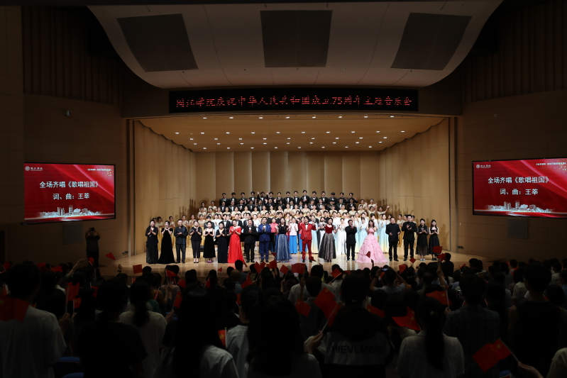 音乐会尾声,氛围热烈高涨,师生挥舞国旗高唱《歌唱祖国》,向祖国母亲送上真挚的生日祝福。