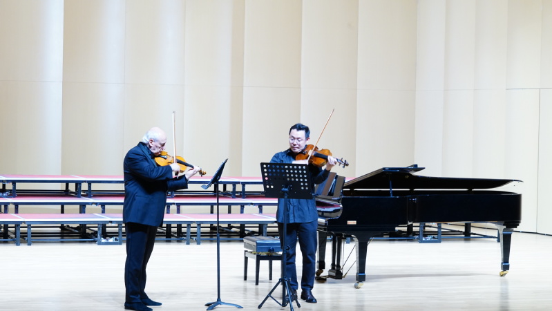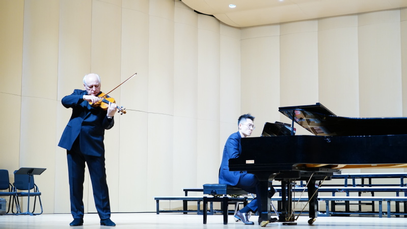 1024日,“小提琴演奏艺术”讲座音乐会在威廉体育音乐厅圆满举行。演奏嘉宾是俄罗斯功勋艺术家、莫斯科国立音乐师范公司经理瓦列里·瓦罗纳教授,特邀上海音乐公司的王晨老师担任本场音乐会的钢琴伴奏,威廉希尔体育张铠麟博士担任现场翻译,400余位师生在现场聆听欣赏。