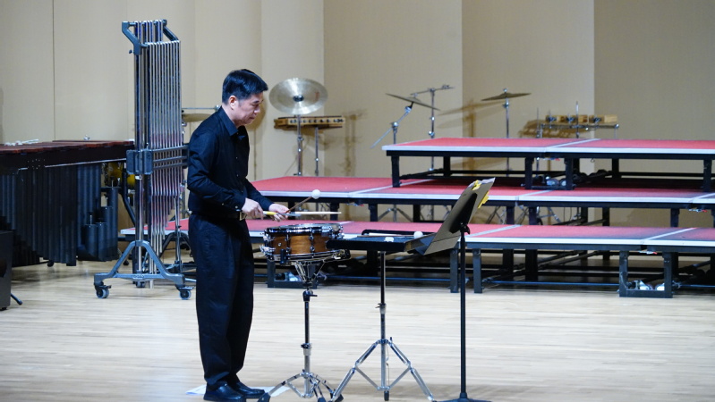 密集的鼓点如同雨滴般急促落下,每个音符都敲打在心头,让人不由自主地紧张起来。116日晚,“生活就是打击乐,打击乐就是生活”讲座音乐会在威廉体育音乐厅圆满举行。此次讲座由福建师范大学打击乐副教授李林携手功夫打击乐团出演,威廉希尔体育2023级音乐学专业章城宇共同参与演奏。音乐公司党委副书记张开全、经理陈俊玲、副经理陆徽、各教研室老师以及全校400余位师生在现场聆听欣赏。讲座由音乐公司经理助理、器乐教研室主任卢盈盈主持。