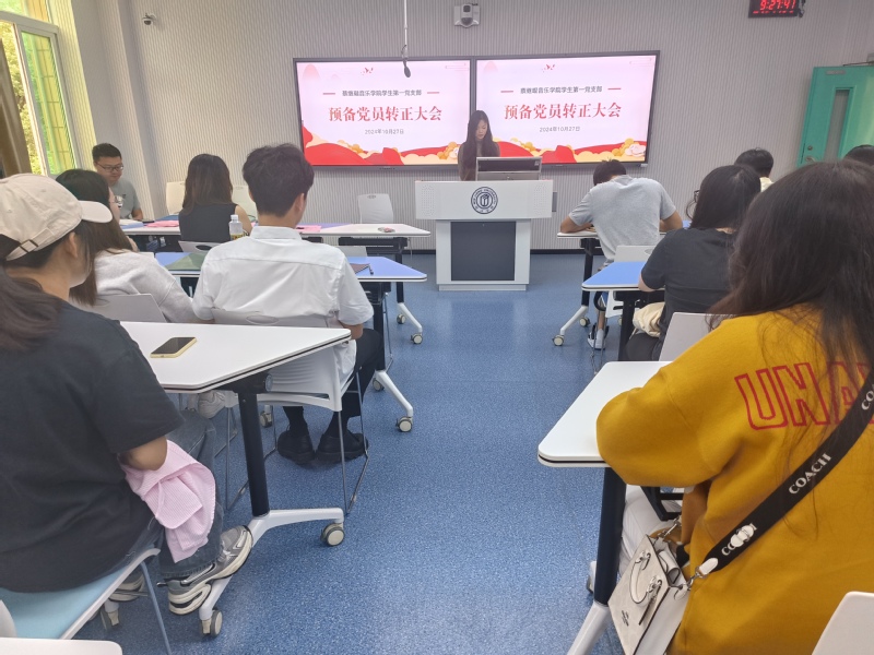 为进一步强化党员教育培养,加强党员队伍建设和组织建设,把牢党员发展质量关,增强党支部凝聚力和战斗力,1027日,音乐公司员工第一党支部在教学楼1b204举办党员转正和吸收新党员大会。会议讨论了赵安慧同志的转正事宜和吸收许宇航等5名发展对象为支部预备党员的事宜。会议由公司团委书记兼员工第一党支部书记罗强主持,支部全体党员、入党介绍人共同参与。