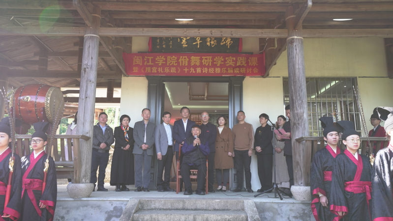 在研学实践现场,佾生们为来宾及村民进行了汇报展演,听取了江逸子老先生讲述将佾舞从台湾带回福建的历程,对佾生们给予厚望,希望这项非物质文化遗产能够薪火相传,发扬光大。在活动开展过程中,公司师生还与江逸子老先生及现场的来宾们就诗经雅乐译谱打谱方面就行深入交流讨论。