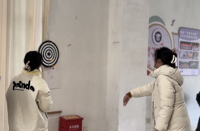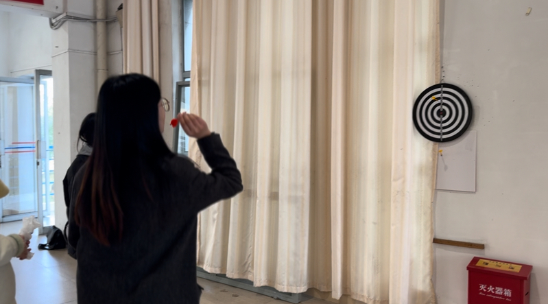 在比赛中,老师们纷纷拿起飞镖,瞄准靶心,用力一送。只见飞镖在空中划出优美的弧线,有的正中靶心,赢得阵阵掌声和欢呼声;有的则偏离目标,引发一片惋惜之声。整个比赛过程充满了紧张刺激的氛围,让人目不转睛。
