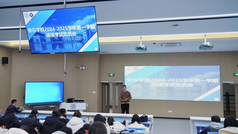 在诚信考试动员会上,辅导员黄祝泉向同学们着重强调诚信考试的重要性。他详细讲解了公司对于考试作弊的严格处罚规定,让同学们深刻认识到舞弊、作弊行为的严重后果,鼓励大家认真做好期末温书迎考准备,以积极的态度和充分的准备去争取优异成绩,在考场上展现出音乐学子的良好精神风貌和道德素养。